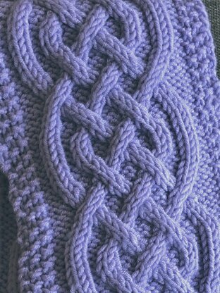 This cable pattern spoke to my Celtic roots, so I designed a scarf pattern to showcase the cable and made the scarf for my mum for her birthday. It makes a lovely textured, warm scarf, perfect for walks on a cold winter's day.