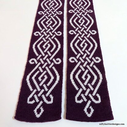 Celtic knot designs have long been featured in knitted garments and accessories. The Celtic Fantasy Scarf is reversible and elegant, featuring beautiful Celtic knots. Use gradient yarn for a neat effect or two solid colors for a more classic look.