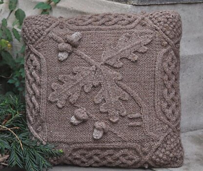 Full text plus charts for the border. This pattern is written in easy to follow text with special stitches explained. Each leaf is knitted in one piece without having to break the yarn to work one side of the leaf and then the other. Border is knitted in one long piece with the resulting short ends sewn together. The border corners are mitered using short rows but no wrapping! The many blackberry stitches cover the holes that naturally develop when making short rows. The ancient Celts prized the oak over other trees and today the oak wood is still prized for its hard wood and natural beauty. Each few (letter) of the ancient Irish writing called Ogam (pronounced owam) is associated with a sacred tree. The Ogam few called "duir" represents the oak and is incorporated on this pillow pattern. This design is one in a series of Celtic botanical knits that I created to draw attention to the beauty of our planet.