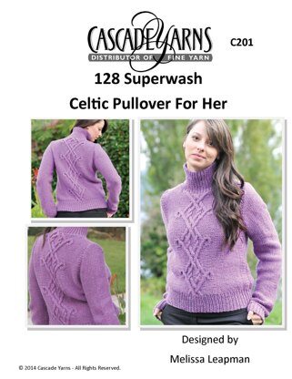 Celtic Pullover For Her in Cascade Yarns 128 Superwash - C201 - Downloadable PDF is a free Intermediate Knitting pattern by Melissa Leapman, available as a Downloadable PDF and includes instructions in English. Super fun to make, this pattern could be your next masterpiece!