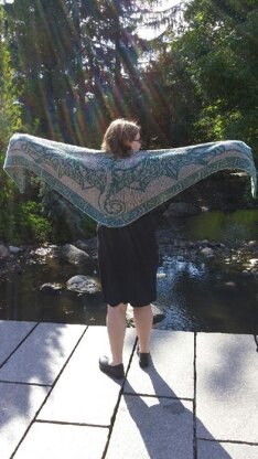This double knit shawl features the motif of a stunning Celtic Wind Dragon with wings made from triangular Celtic knots.