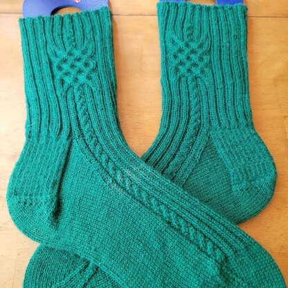 Worked top cuff down Larger sizes may need an additional ball of yarn dependent on leg and foot length Both socks start with the Celtic Knot Motif at the beginning of the round; it is moved to the outer edge of the leg through moving the beginning of the round after the chart or written instructions for the motif are completed.