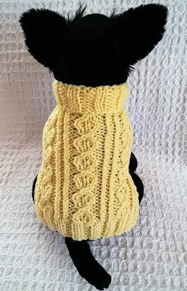Pattern includes instructions for small and medium size dog sweater.