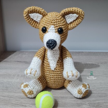 Cerys the corgi comes from Pembrokeshire, she loves running around the farm bossing the cattle around and playing with her ball. (Rumour has it that she has some royal relatives too…) She sits 9 inches tall (when made with recommended materials).