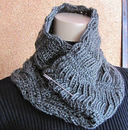 One skein makes a sophisticated cowl for women, and two skeins makes a man-sized chain mail scarf.