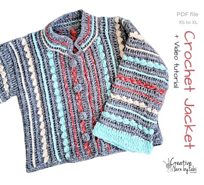 Thank you for considering my pattern, and happy crocheting! Crochet jacket Pattern for US 4 - 12 sizes. Hook size: 7mm Lion brand denim yarn: 500gr Velvet yarn