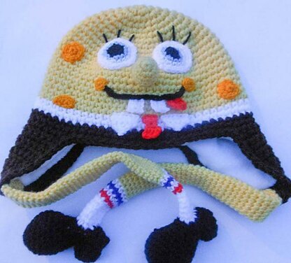 Adorably cute Character Earflap Hat pattern with the unique addition of legs for ties