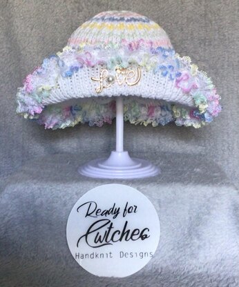 Pattern includes Romper Dress with options for a knitted skirt or an organza skirt attached with knitting in lace and options for long and short sleeves. It also includes a Bolero, Bonnet, 4 styles of Hat and 2 styles of Mary Jane shoes (one with knitted in socks).
