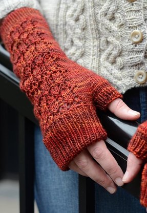 There is nothing like a cozy pair of fingerless mitts to add a bit of comfort, especially when you’re on the go during transitional seasons. Another pattern named for a Peterborough, Ontario street, the Charlotte St. mitts are a necessary accessory! These will keep you comfortable around town in the chilly spring and fall, or warm your hands while typing at the keyboard indoors in winter. Featuring a delicate lace pattern along back of the hand, and a long, folded over ribbed cuff at the top.