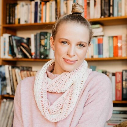 Make this to whatever size you need - a multiple of 2 stitches is all that’s required! The suggested length will double around the neck, as shown.