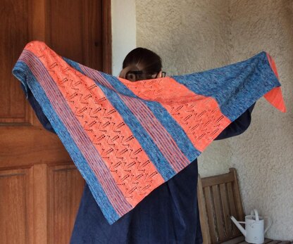 Chat et souris is a wide and colourful shawl, alternating garter stitch and lace pattern. This pattern figures leaves, which is perfect for fall.