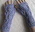 This is a pattern for fingerless mitts. They measure approximately 4- 5 inches from your thumb up your arm. They feature cable stitch patterns on both sides of the mitts, with a ribbing center for shaping, and optional beading. The stitches are charted only. The mitts also have a thumb gusset to ensure the best fit, and allow maximum movement. One size fits most, as a result of the lateral give, but there are tips for changing the size within each pattern. There are also tips for knitting in the beads. These mitts are made using two circular needles, and a heavy weight sock yarn, or light sport weight on size 2.5mm needles