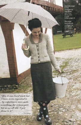This is a pattern for a Check Cardigan, originally published in Knitting magazine in the Land Girl s issue. It has a houndstooth check pattern, with pockets and a collar. Photo Laurel Guilfoyle for Knitting magazine.