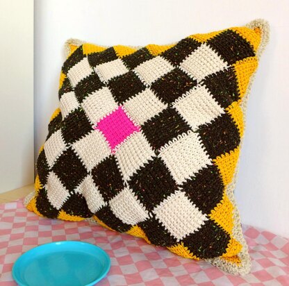 A classic technique for Tunisian crochet lovers, intriguing, yet relatively easy to master, the entre-lac is a “must-have” skill everyone learning Tunisian crochet will want to try sooner or later. With this checked pillow cover you’ll have fun playing with colours while creating a delightfully decorative item.