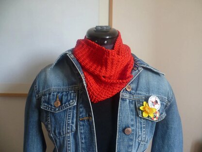A classic Infinity Scarf designed for cotton yarns, the scarf has a checkered stitch and garter stitch border. An easy-to-knit first project for the beginner knitter. The red scarf pictured is knit in Rico Essentials Cotton DK, other DK yarns could be used instead. If knit in aran/worsted-weight yarn, the finished scarf will be slightly wider than the double-knitting scarf pictured.