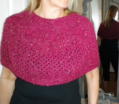 Cover up with this tweedy soft capelet. The stunning openwork design is knitted throughout resulting in a charming piece. It can be mixed and matched over any top or dress. Worked in the round The pattern includes 2 sizes. Sizes: M and L. Yarn Weight: Medium Worsted. Skill Level: Easy. Knitting Needles: US 8