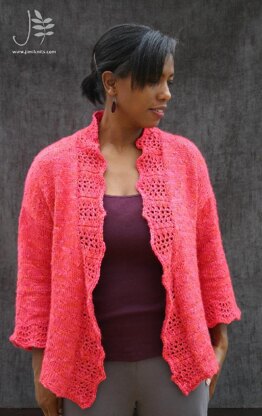 Cherry Ginger Ale - Lounge around in something luxurious! This box styled open cardigan with drop shoulder, bracelet length sleeves is the perfect overlay. It has a textured fabric that keeps you warm and cozy, and is light enough to wear all day long. The wavy lace edgings lend it that extra charm. It’s like wearing your favourite shawl, but with sleeves!