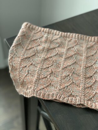 Simple cowl with beautiful details in the stitch pattern. Knit in dk weight yarn in the round. The details of the stitches would be beautiful in a neutral, marled, speckled or variegated yarn.