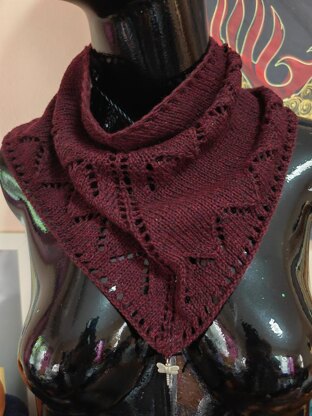 This small bandanna uses a half skein of Everyshine CASHMERE LACE 88/12 (350yd/320m; 1.76oz/50g, 88% cashmere; 12% manufactured fibers) - in colorway 26. Any yarn that will yield the gauge indicated would be suitable of course.
