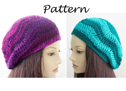 A slouchy hat in a modern chevron design, stripe it in any way you’d like. The hat works up quickly so it is fun to experiment with different colors and patterns of stripes. I like to crochet the hat in a self-striping yarn or a yarn with long color ways so there is no need to change yarns and no need to sew in lots of tails! But making stripes is a great way to use up left over yarn from your stash. It is a flexible pattern; its easy to change the size or to make a little cap or a bigger, slouchier hat.