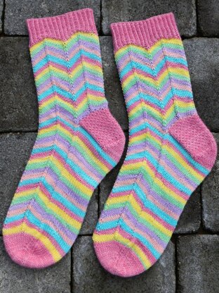These socks would be ideal for intermediate sock knitters who would like to try adding a zig-zag pattern to their socks.