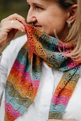 Wrap yourself in the Chevronette scarf, a symphony of vibrant waves. With its enchanting pattern and kaleidoscope of colors, this scarf is a romantic dance that envelops you in warmth and whimsy, turning every moment into a colorful embrace.