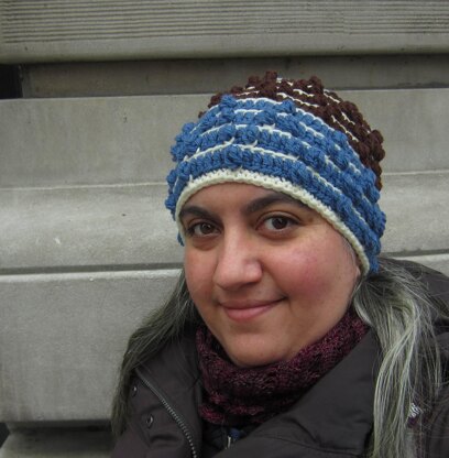 Create chevrons with traveling cluster stitches (bobbles) while crocheting this slouchy hat. Use more or fewer colors to customize this unisex project. This pattern is a great stash buster project for using scraps!