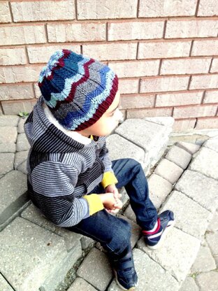 A simple hat pattern covering all sizes, and features the ever popular chevron pattern for the body. It is knit from the bottom-up and can easily be customized to fit appropriately on the recipient’s head. Using various yarns from your stash will make it even more fun and interesting to knit. Everyone in the family can have the same hat and yet different due to yarn choices. The first sample shown is knit with yellow and blue colors of Cascade 220 Superwash Worsted yarn from my stash, in Toddler size. The second sample is knit with two shades of green in the same yarn, in Child/Teen size. The third sample is knit in a tonal purple from DesiLoop Hand dyed yarns in Superwash Merino Worsted, in Adult size.
