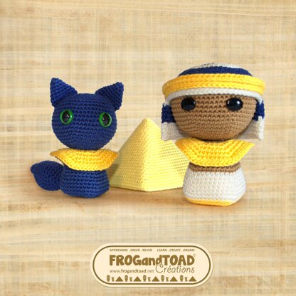 Meet Bastet the Egyptian Cat goddess with her best friend Chibi Pharaoh and their brand new amigurumi pyramid. This PDF pattern includes 12 pages with detailed step by step pictures from the making to the assembling.