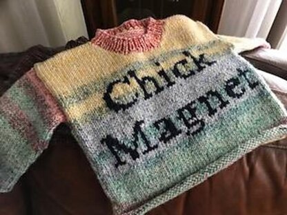 The pattern is very easy, very little shaping. Both sizes included are knitted from the same directions, you achieve different sizes by changing needle and yarn sizes as detailed in the pattern. You can leave off the colorwork "Chick Magnet" and you've still got a great sweater.