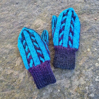Children’s cable mittens in twined technique