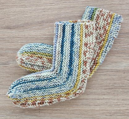 This sock is knitted a bit differently – across the foot and using only garter stitches. To succeed, keep track of increases and decreases by placing a marker along your work.