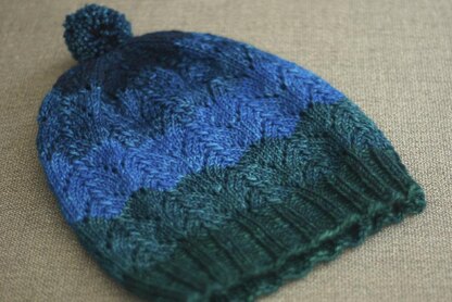 Will stretch to fit up to 20.5 [22, 23.75]" /52 [56, 60.5]cm at brim. 10.5"/26.5cm deep from cast on edge to top of crown.
