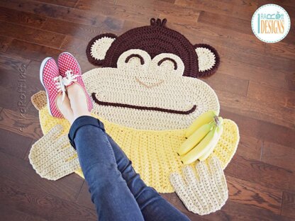 Smile like a monkey with a new banana when you finish an adorable area rug. This pattern is in PDF format with Instant Download. It is written row-by-row using US crochet terms. It also includes crochet diagrams, step-by-step photos, and a conversion chart to UK terms.