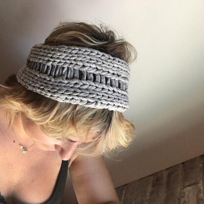We use comfy t-shirt yarn to make this multi-functional knit that can be worn all year round. Wear it to keep your hair out of your face during your yoga practice and then pull it down to cover your eyes for a restful shavasana (the final pose in yoga).