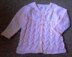Chloe is a lovely versatile design that can give so many different looks from the one pattern, and without any complicated calculations, just by changing the yarn and needle sizes. Choose long or short sleeves, variegated or plain yarn and matching or contrasting bandings and you can achieve many different garments. Because of the construction of Chloe, it can also be made longer and worn as a dress or shorter and made into a bolero style jacket. Looks good buttoned up as a tunic over jeans or as a cardigan over a cotton summer frock. The pretty lace pattern isn’t too lacy and is very simple to work without being boring. A softly curled cuff and slightly flared hem add a stylish touch that means it is also flattering and a pleasure to wear.
