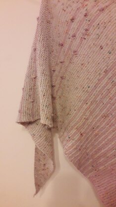 A triangular three colors shawl made in collaborations with Borgo de’ Pazzi yarn Chloe, that will amuse you with its stripes and bobbles! The texture formed by crossed stitiches on the final edge, creates an interesting pattern!