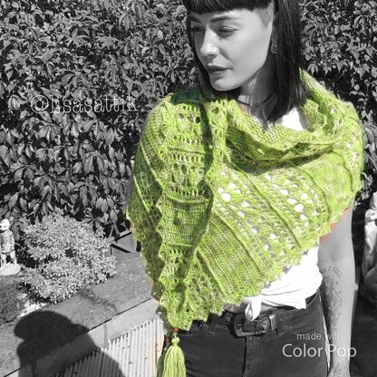 The shawl is finished with an edging and tassels. You'll find written instructions, charts and also a tassel making photo tutorial included.