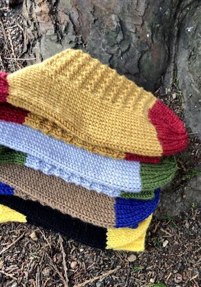 These socks are knitted using a DK weight and are designed to make the perfect cosy house socks. They were inspired by the colours of the Hogwarts houses, but you can customise them to your liking.