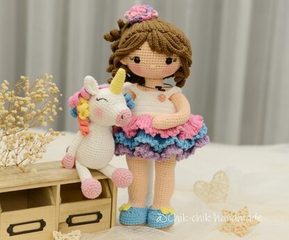 * Featured: - CHRISTINE & FRIEND finished approximately 11.8 inch ~ 30cm tall - suitable for decoration or baby toy. - The tutorial/pattern in English (using US crochet terms & convention). - CHRISTINE & FRIEND printable PDF file with 37 pages and 107 images to make it easy. - CHRISTINE & FRIEND’s dress, shoes are removable. ** Difficulty: Intermediate crochet skill *** Suggested Materials & Tools: - YarnArt Jeans thread and crochet hook size 2.3mm - Black safety eyes: 10mm - Polyester fiberfill for stuffing: 200gram - Sewing needle - Scissors - Pins - Button - Fabric glue or glue gun ****This pattern is for personal use only. Please do not copy or redistribute this pattern or claim it as your own. Do not translate it into another language. YOU MAY SELL YOUR FINISHED ITEMS IF YOU LIKE, but please credit Chik-chik handmade shop as the designer by adding “pattern designer by @Chikchikhandmade”. Thanks a lot! Please contact me if you have any question. Thanks & Happy crocheting!