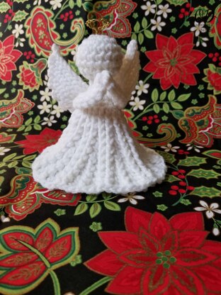 She makes a lovely tabletop decoration, you can add a length of ribbon (or a crochet chain) to use her as a tree ornament or decoration in your home. She will also work atop your Christmas Tree as a Tree Topper.