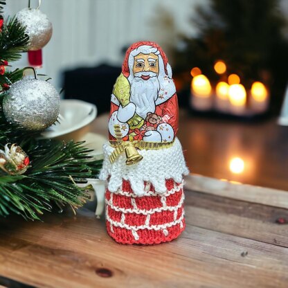 This gorgeous Christmas Chimney knitting pattern is made to hold a 125g Lindt Santa chocolate or a similar size sweet and can be used as a Table Decoration. This makes a stunning addition to your table, a fantastic fund raising item for fayres etc or great as a novelty decoration.