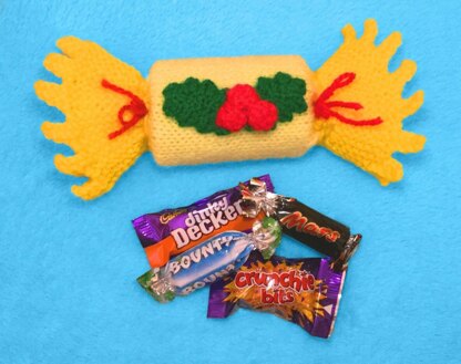 This gorgeous Christmas Cracker knitting pattern is made to hold chocolate goodies. I have put small sweets in the Cracker but any similar sweet or sweets could be used. It measures 16 cms long from the one end of the cracker to the other.