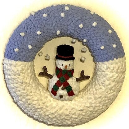 Crochet up this winterly Snowman Wreath for your home this Christmas.