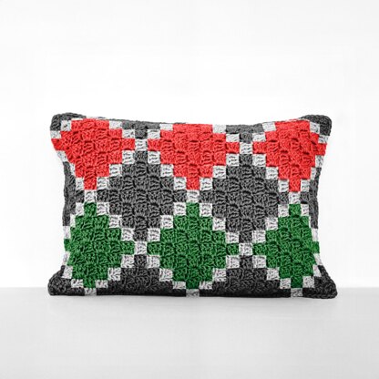 This festive Christmas C2C crochet pattern features a bold diamond motif in classic red, green, white, and black — ideal for holiday decorating! Designed for corner-to-corner (C2C) crochet, this cheerful design is perfect for cushions, pillow covers, or festive accents on your sofa, armchair, bed, or bench.