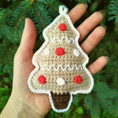 Crochet gingerbread tree ornaments pattern for beginners or any level knitter. Gingerbread Christmas decorations is made of 2 halves joined with a crochet hook.