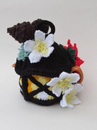 The Christmas Lantern tea cosy is modelled on an old Victorian style lantern with a candle inside and a ring on the top. The lantern is decorated with pine cones, Christmas roses and a poinsettia, as if it's all ready to be carried around carol singing. The Christmas Lantern tea cosy is part of the pint sized collection for mini sized teapots that hold about a pint of tea, just enough for one. The tea cosy is very detailed which does take time to make, but it is unlike any other tea cosy. The tea cosy is knitted up in traditional Christmas colours so it feel very festive, and the cosy glow from the candle light makes the lantern look as hot as it keeps the tea. On old fashioned looking Victorian Christmas lantern for a good old fashioned cup of tea.