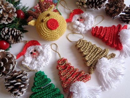 This is just a lovely project for your Christmas Decorations, 3 hanging pieces, you will learn step by step to make cute Gnomos, Reindeer and Santa Claus, pattern is full of picture tutorial, they are fast to crochet so you can make several of each one for your Christmas tree, gifts for friends and family, for packaging your holidays presents with the Christmas theme and to give the warm sweet Christmas atmosphere to your home and loves ones