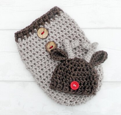 Hat and swaddle sack are made using Super Chunky weight yarn.