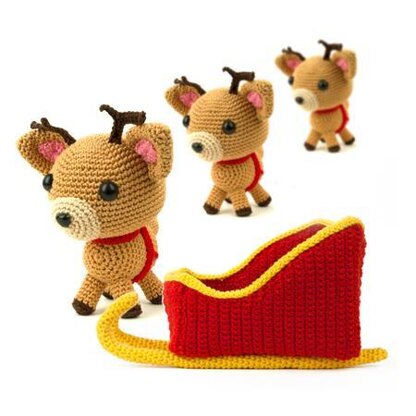 Materials Crochet needle (2,5 mm) Medium brown yarn (for instance SMC Catania - 179) Dark brown yarn (for instance Phildar Phil Coton 3 - Ebene 47) Pink yarn (for instance Phildar Phil Coton 3 - Petunia 68) Light brown yarn (for instance Phildar Phil Coton 3 - Seigle 88) Red yarn (for instance Phildar Phil Coton 3 - Cerise 50) Yellow yarn (for instance Phildar Phil Coton 3 - Soleil 45) Fiber fill 6 black safety eyes (10 mm) 3 black safety noses Hair spray Iron wire (1,1 mm)